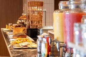 If you like to start your day gently, the breakfast buffet awaits you with a wide selection of sweet and savory items. Eggs, freshly baked pastries, fresh fruits, cereals, and hot drinks are served in a bright room. For early risers, a lighter option is available from 4 a.m.